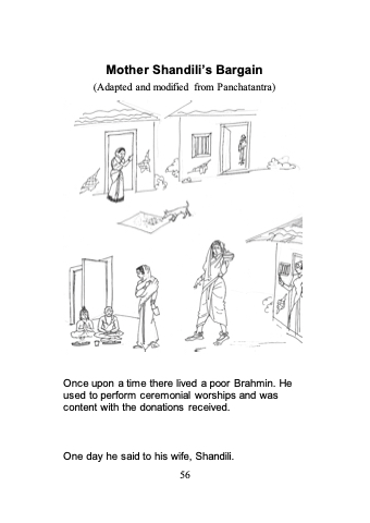 Mother Shandili’s Bargain (Adapted and modified from Panchatantra) Once upon a time there lived a poor Brahmin. He used to perform ceremonial worships and was content with the donations received. One day he said to his wife, Shandili. 56