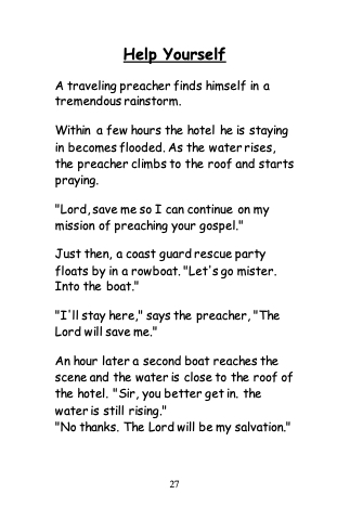 Just then, a coast guard rescue party floats by in a rowboat. "Let's go mister. Into the boat."