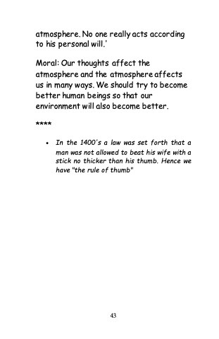 In the 1400's a law was set forth that a man was not allowed to beat his wife with a stick no thicker than his thumb. Hence we have "the rule of thumb"