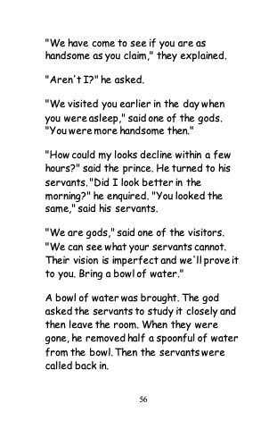 "How could my looks decline within a few hours?" said the prince. He turned to his servants. "Did I look better in the morning?" he enquired. "You looked the same," said his servants.