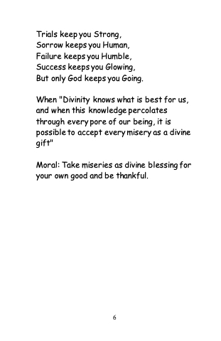 Moral: Take miseries as divine blessing for your own good and be thankful.