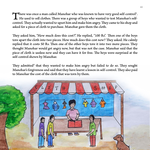 There was once a man called Manohar who was known to have very good self-control1. He used to sell clothes. There was a group of boys who wanted to test Manohar’s self- control. They actually wanted to upset him and make him angry. They came to his shop and asked for a piece of cloth to purchase. Manohar gave them the cloth.